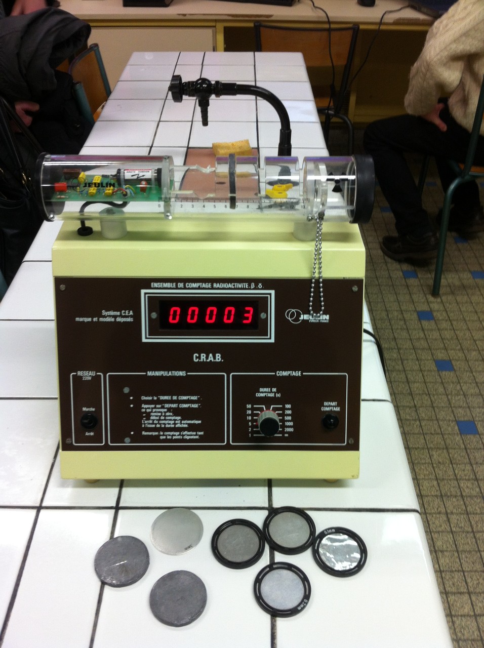 - un compteur de radiations, de type Geiger-Müller, capable de détecter des rayons Bêta et Gamma et de les compter